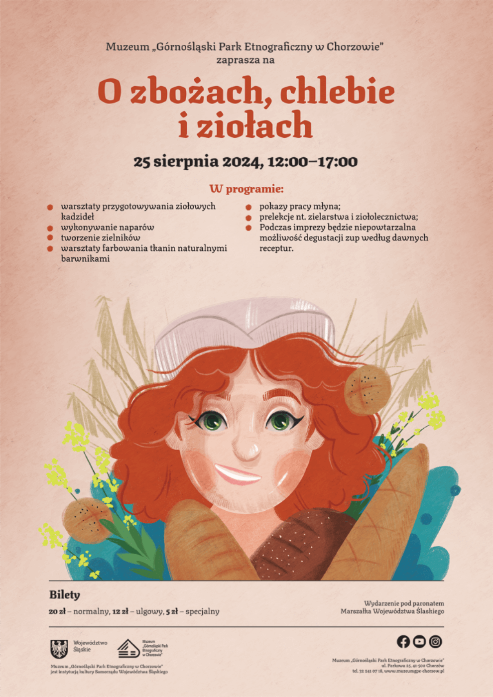 Plenerowa impreza „O zbożach, chlebie i ziołach” obędzie się w Muzeum „Górnośląski Park Etnograficzny w Chorzowie” w niedzielę, 25 sierpnia 2024 r., w godzinach 12.00 – 17.00. Goście skansenu będą mogli m.in. posłuchać o dawnym zastosowaniu ziół oraz ich leczniczych i magicznych właściwościach.