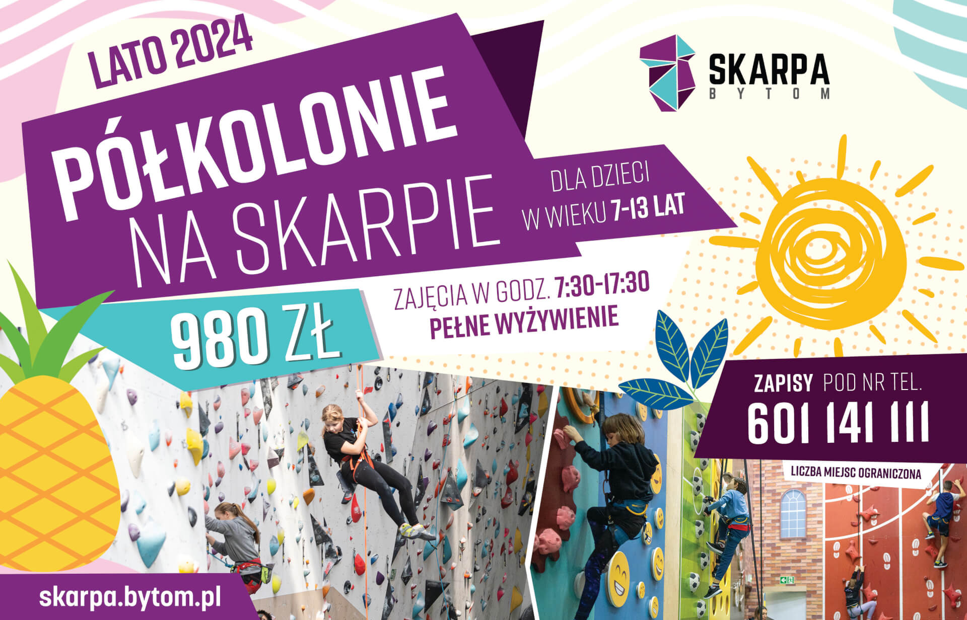 Program Półkolonii na Skarpie obejmuje 10 godzin zajęć sportowych, plastycznych i ogólnorozwojowych. Główną atrakcją są zajęcia na ściankach wspinaczkowych pod okiem wykwalifikowanych operatorów i doświadczonych wychowawców. Na terenie obiektu dostępne są strefy wspinaczkowe przeznaczone dla dzieci w każdym wieku: Gryfne Wspinanie – 14 torów wspinaczkowych dla najmłodszych, dziecięca boulderownia oraz duże ściany wspinaczkowe dla nieco starszych uczestników.